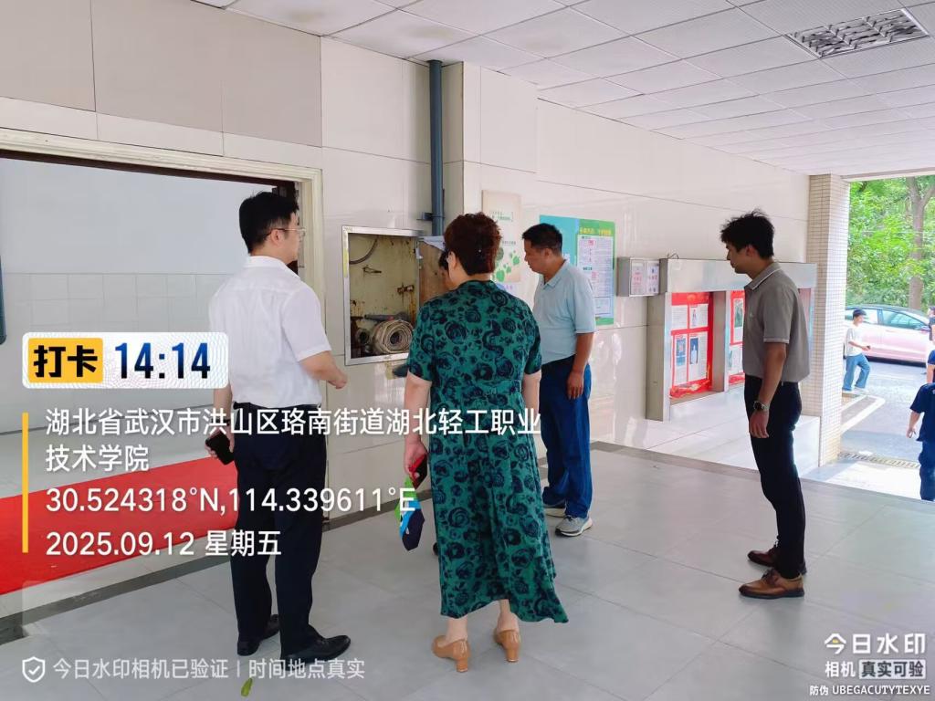 为进一步压实校园消防安全责任,筑牢校园安全防线,2025年9月12日下午2:00,武汉市洪山区消防救援大队夏参谋莅临我校开展消防安全专项检查指导工作。我校党委副书记、校长夏光蔚,副校长方东霞,保卫处负责人谢振兴及相关部门负责人陪同检查。